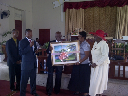 Persons in photo L-R; Elder Patrick Bennett, Pastor Holland Thompson, Elder K.L. O’Connor, Sis Cecelia Sookie and Elder Dorrett Folks.