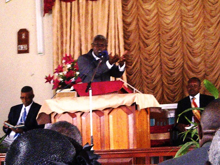 President Of East Jamaica Conference Of Seventh Day Adventist, Pastor Adrain Cottrell visited Morant Bay Seventh Day Adventist Church On Sabbath Nov 24, 2012. Pastor Thompson seated to the right looks on.